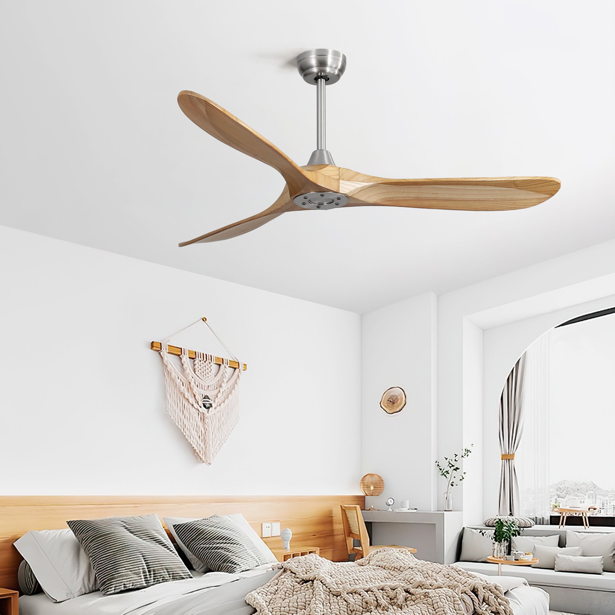 60 Inch Outdoor Ceiling Fan Without Light 3 Solid Wood Blade with DC Motor Remote Control