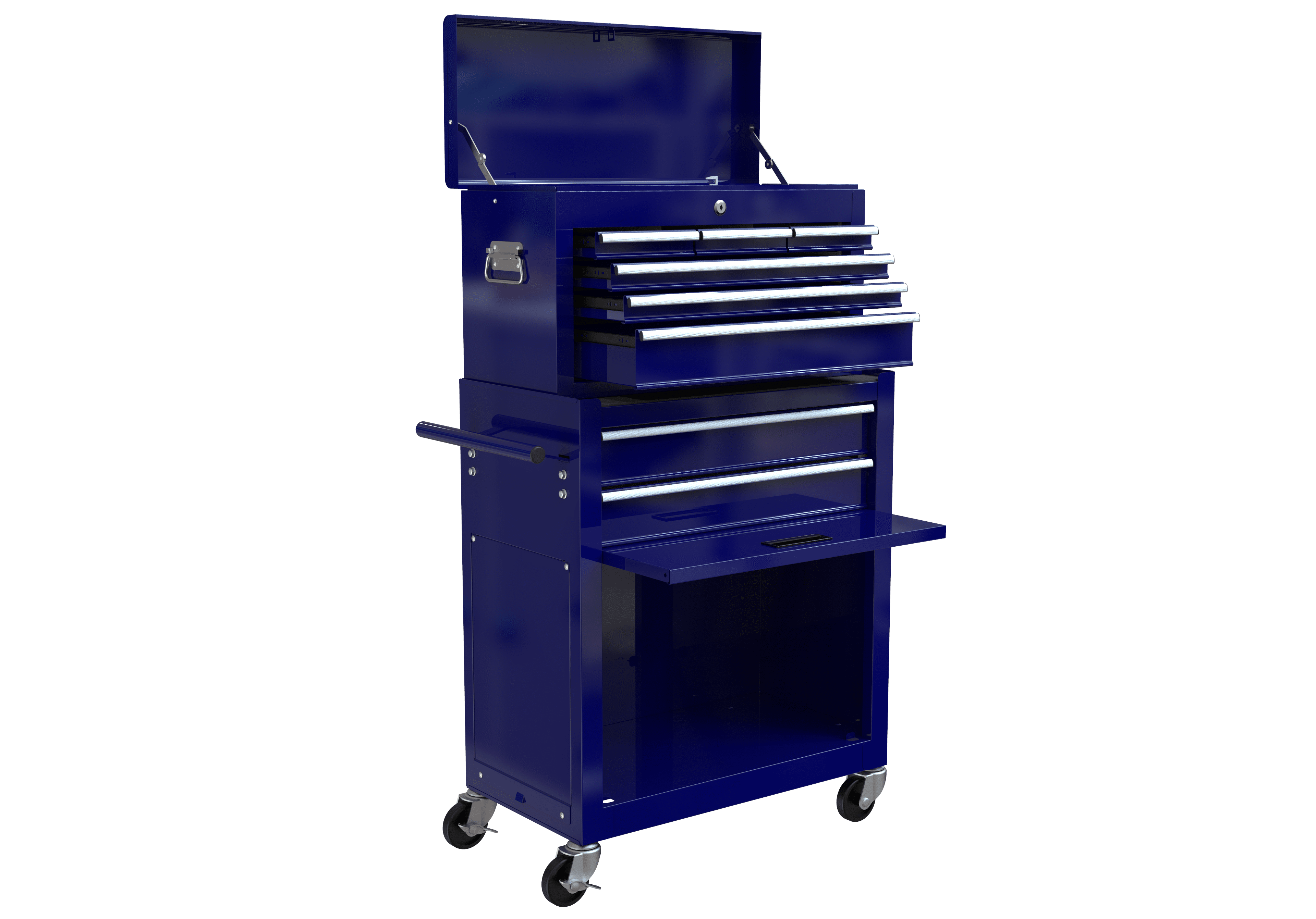 2.With swivel casters could maneuver easily around work area. The wheels have locking mechanisms to prevent the tool cabinet from moving around on its own while in use. There is also a solid work surface on the top, so you can work right on top of it.